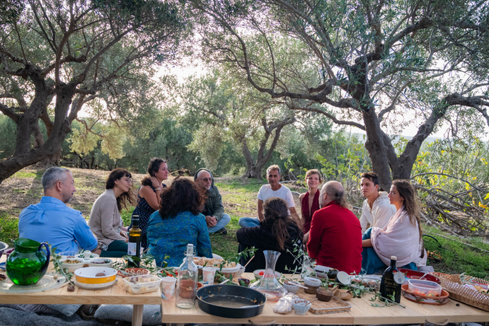 We open our land to a small number of facilitators, teachers, and community holders each year who wish to bring their own group to Crete and use this place as the ground for their own work.